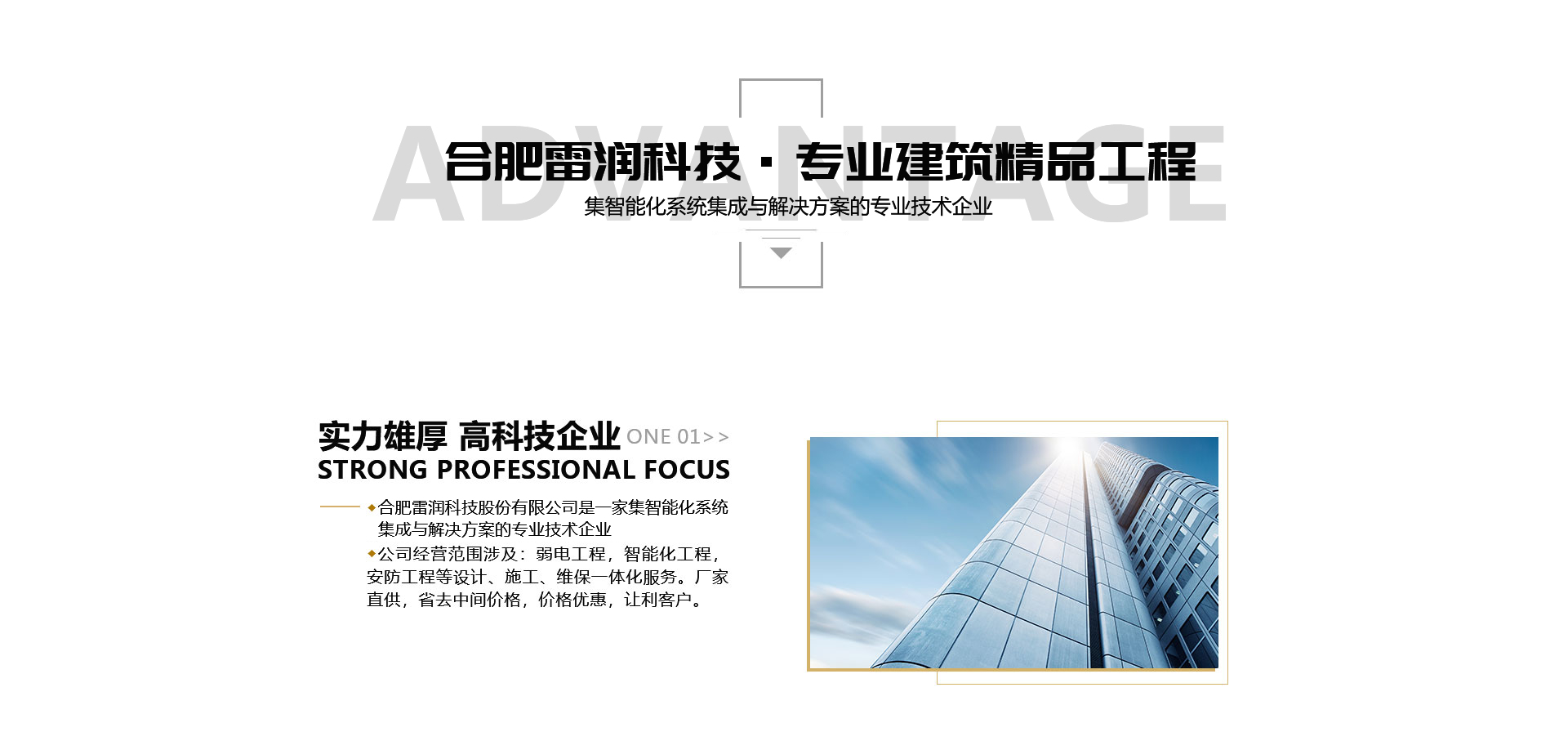 合肥雷润科技股份有限公司成立于2014年,经过多年的蓄势发展,已成为行业内颇具影响力的智能化系统集成与解决方案的技术企业。公司经营范围涉及:建筑智能化系统、综合布线、安全技术防范系统、车牌识别系统、门禁控制系统、广播会议多媒体、计算机网络、应用软件定制开发、机房工程、多媒体展厅、LED屏信息发布系统等的设计、施工、维保一体化服务。同时代理经销各类电子电气产品。我们与国内外众多品牌供应商建立了良好、稳固的合作伙伴关系(如:海康威视、天地伟业、IBM、华为、H3C、锐捷、APC、康普、Honeywell、R&M、BOSCH、捷顺、HID、TOA、迪士普、SAMSUNG等)。为单位、医院、学校、国企、外企、房产物业等客户提供的系统集成和产品技术服务,并获得用户好评。 我们拥有一支朝气蓬勃技术的团队,现有本科学历以上员工占总人数的80%,并且拥有12名中工程师、7名注册建造师、各类技术资质工程师15名。具备的技术力量和的实施团队。我们始终秉承I...